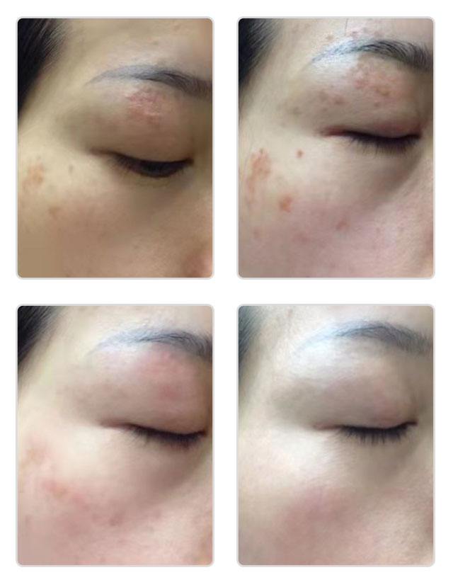 我按照老师的涂抹了10天左右,眼周的扁平疣就起了反应,微微凸起了几天后就开始瘪下去了,老师说是淤阻疏通后,肌肤受到气血的滋润,免疫重新被激活,把疣体消耗掉了。又继续涂抹十几天,眼皮上那几个大一点的疣变平了,随后周围的小疣也开始慢慢消退。真的很神奇,疣体自己跑出来了,然后瘪下去就什么也没了,我还以为会结痂脱落呢。